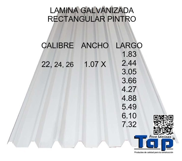 - LAMINA GALVANIZADA RECTANGULAR PINTRO